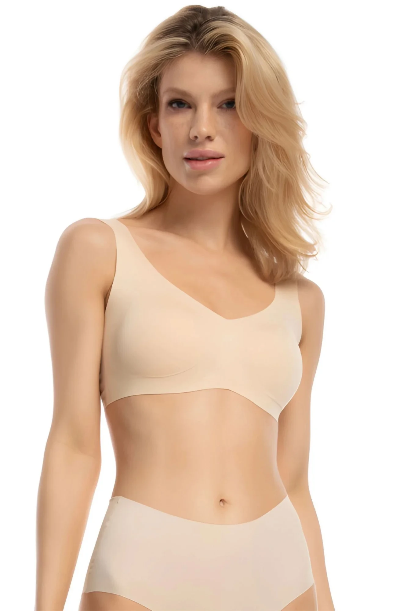 Dámský sportovní top Infinity beige JULIMEX - béžová barva - vyztužená podprsenka - z hladkého mikrovlákna - vyjímatelné vycpávky - nastavitelná a odpínatelná ramínka