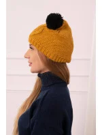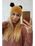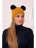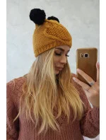 Fleecová čepice 2 bambulky K291 hořčice
