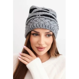 Dámská zimní čepice s příměsí vlny je teplou a stylovou nabídkou na mrazivé dny. Vyrobena z hrubé pleteniny s dekorativním vzorem, přitahuje pozornost nevšedním designem a horizontálními pruhy, které dodávají charakter celé stylizaci. Model se dokonale přizpůsobí hlavě, zajišťující teplo a pohodlí nošení po celý den.