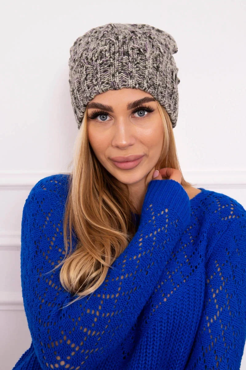 Fleecová čepice Roksana K209 šedá+fialová+ecru
