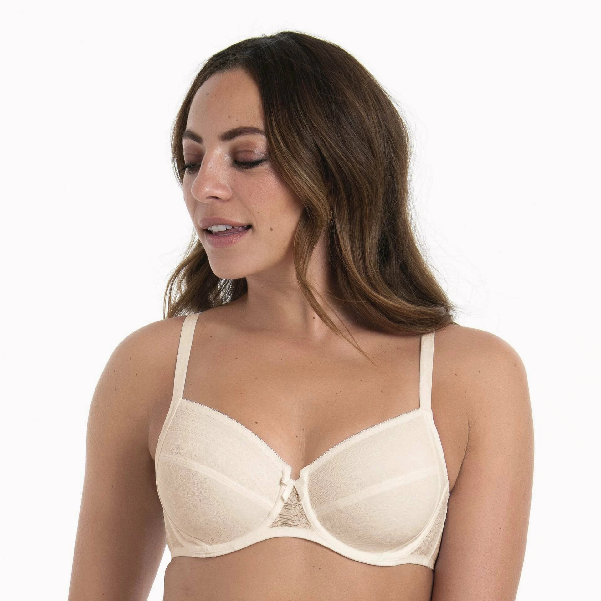 Podprsenka Anita Fleur - měkká podprsenka s kosticí. Plochá, jemná krajka s květinovým motivem, plně podšitá šarpézou tělové barvy, umožňuje této podprsence úspěšně kombinovat funkčnost se sex-appealem. Stabilně podpírá poprsí a chrání ho před nepříznivými změnami. Speciální podšívka v měkkých košíčcích se přizpůsobí každému pohybu. Ideální pro ženy s větším poprsím, které ocení pohodlí při nošení.