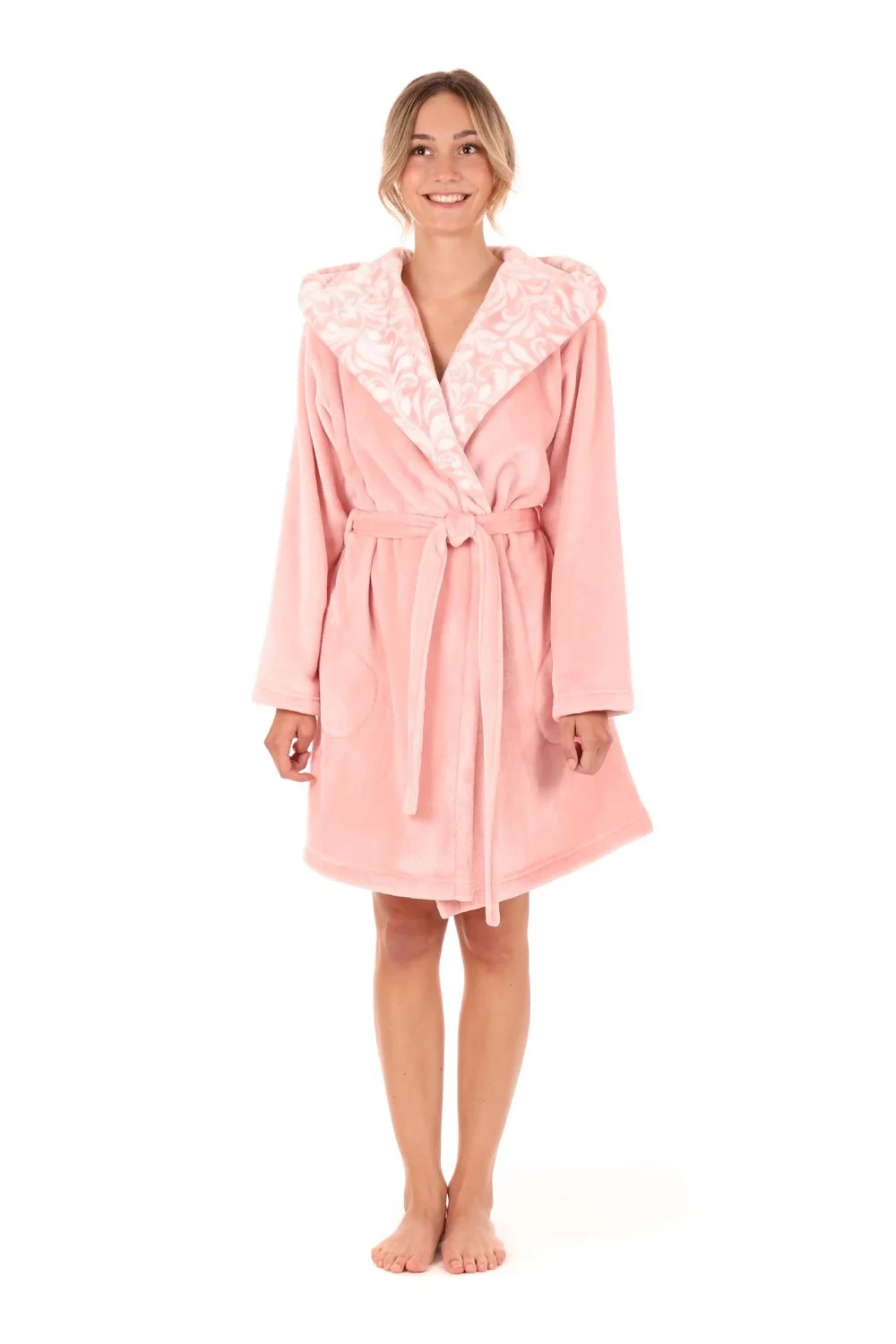 Dámský župan Flora s kapucí krátký 4856 3050 růžová perla - Vestis
