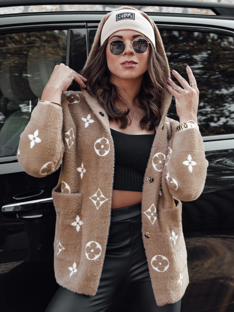 FORTY dámská bunda z alpaky s kapucí světle hnědá FashionStreet NY0688