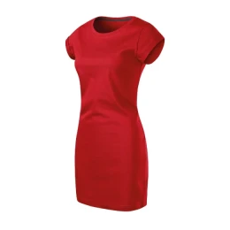 bez etikety - připraveno na rebranding volný, lehce tvarovaný střih s bočními švy délka nad kolena hlubší kulatý výstřih úzký lem průkrčníku z vrchového materiálu s 5 % elastanu neutrální velikostní štítek v boční části průkrčníku vnitřní část průkrčníku začištěna páskou v barvě 36 zpevňující páska od ramene k rameni ohrnuté rukávy zachycené ve 4 bodech šitím
