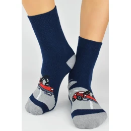 Skarpetki chłopięce frotte wzorzyste z antypoślizgową stopą z wysokiej jakości bawełny. Sprzedawane w miksach kolorystycznych.
