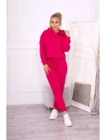 Fuchsiová oteplovací souprava s mikinou uvázanou dole