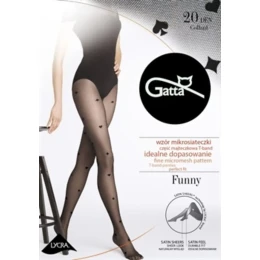 Vzorované punčocháče Funny z příze 20 DEN imitují jemnou, hustou a velmi jemnou síťovinu kabaretního typu. Nemají označenou sekci kalhotek. Tento model také nemá výztuhu v oblasti špičky, takže se hodí do všech typů obuvi. Použití splétané elastanové příze LYCRA Satin Sheers zajišťuje elegantní, matný vzhled a dokonalé padnutí.
