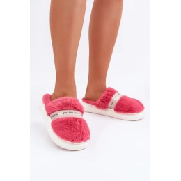 Futrové pantofle s ozdobným páskem růžové Savalithea