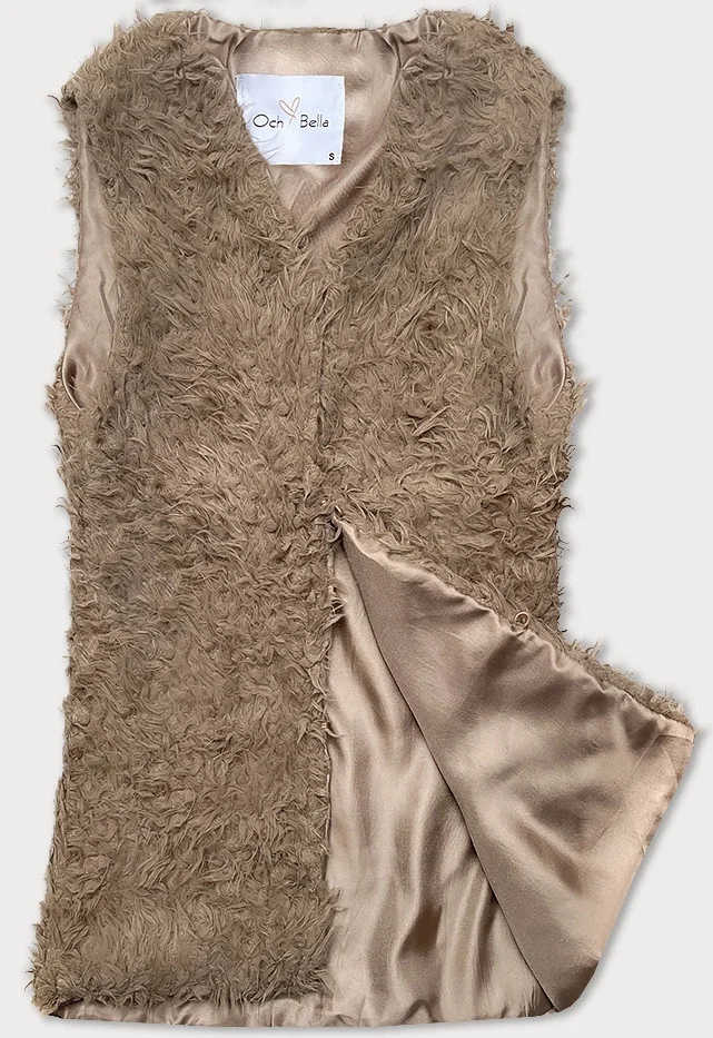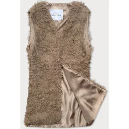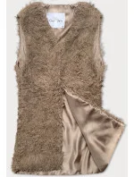 Tmavě béžová kožešinová vesta s dlouhým vlasem (1402)