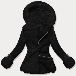 Černá kožešinová dámská bunda s prvky z eko kůže J Style (11Z8173)
