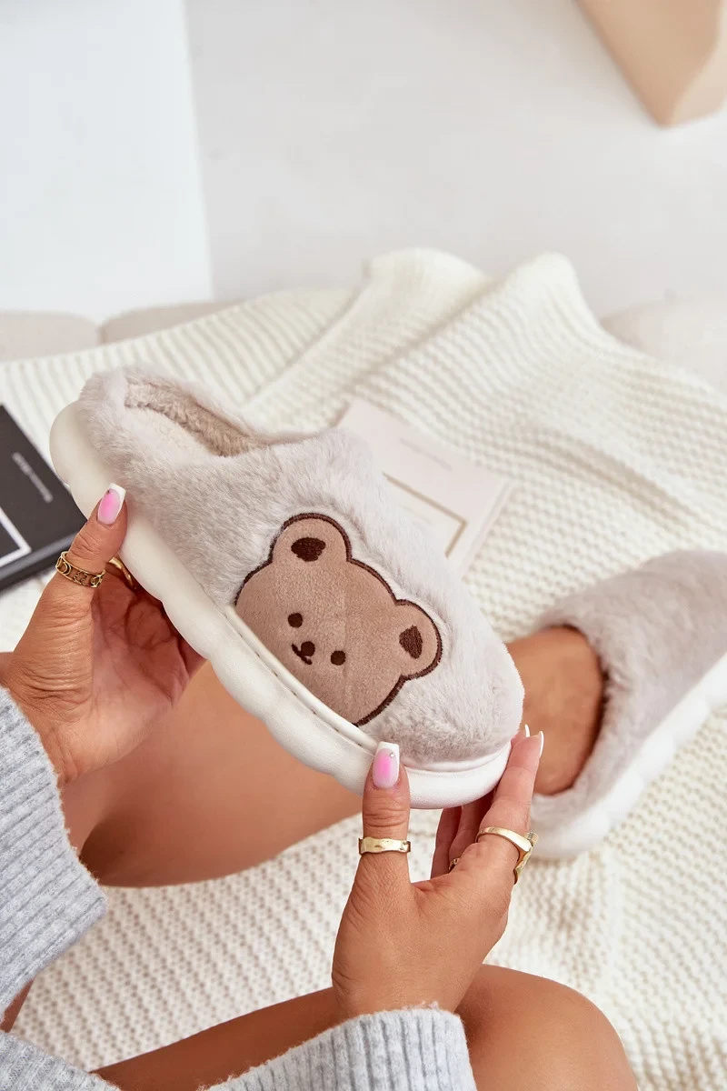 Futrzane Dámské Pantofle Medvídci Béžové Firedi