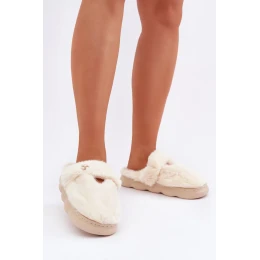Futrzane Pantofle S Malou Broží Světle Béžové Primaria