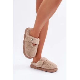 Futrzane Pantofle S Malou Broží Tmavě Béžové Primaria