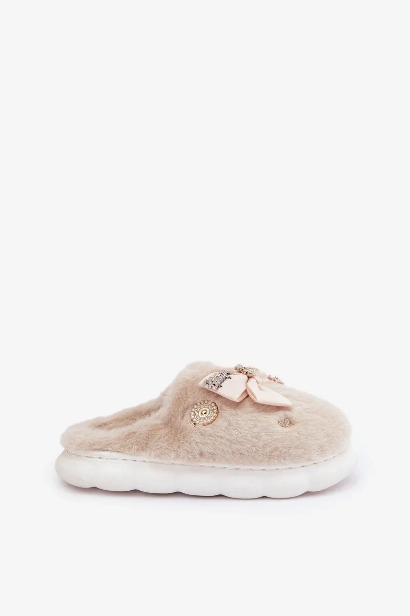 Futrzané Pantofle S Mašlí A Brožemi Béžové Annalira