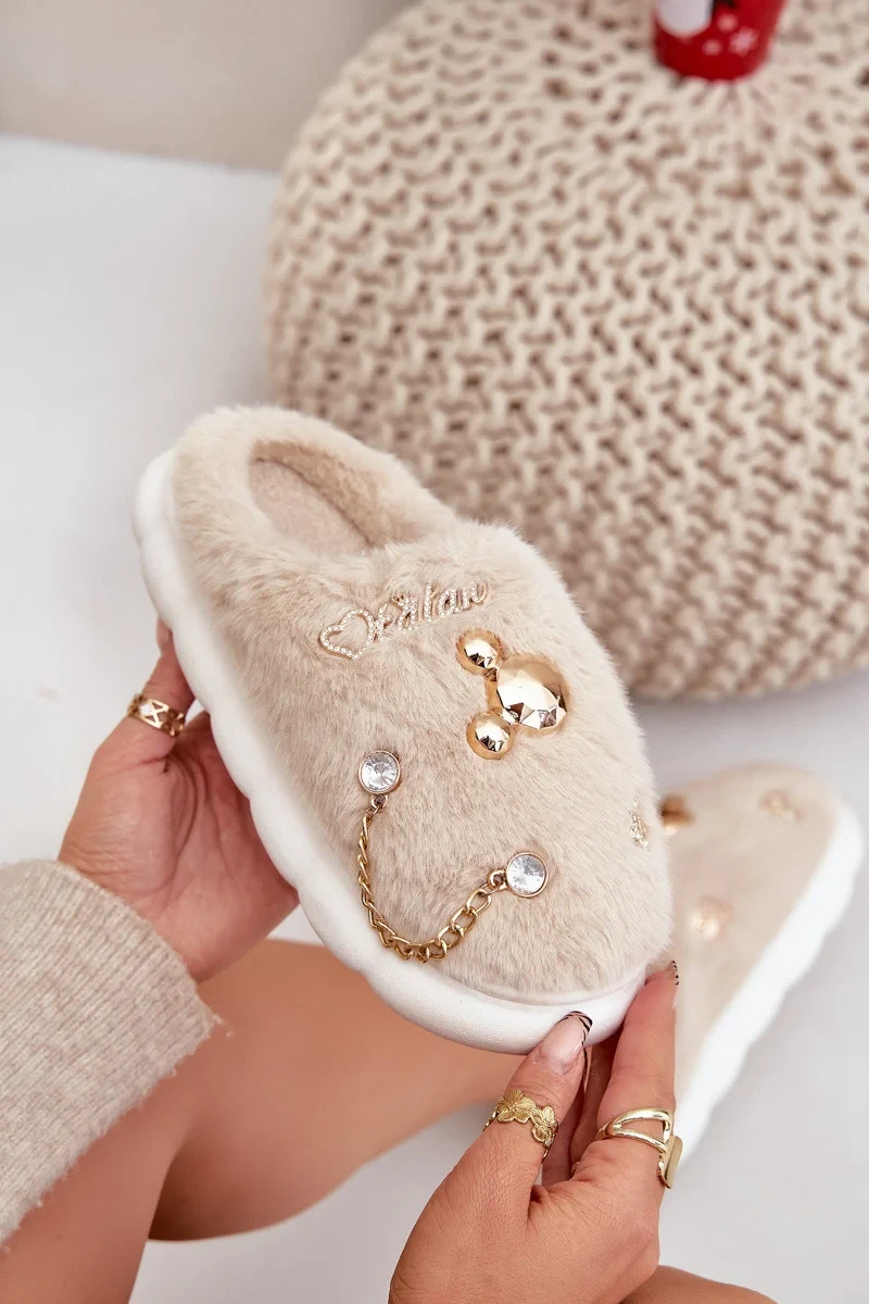 Futrzane Pantofle S Odznaky Béžové Ivelfedi