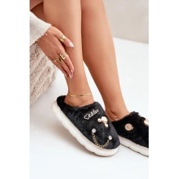 Futrzane Pantofle S Odznaky Černé Ivelfedi