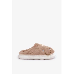 Futrzane Pantofle S Odznaky Tmavě Béžové Ivelfedi