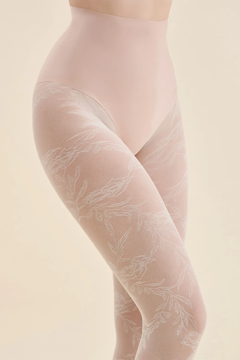 Punčochové kalhoty Gabriella, model Floral Code 576, vyrobené z 84% polyamidu, 15% elastanu, 1% bavlny, bez vyznačených špiček, tloušťka 20 DEN, bez vyznačených nohaviček, ženské.
