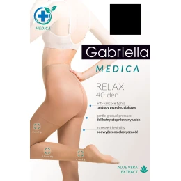 Punčochové kalhoty Gabriella, model Medica Relax 40 DEN kód 111. Vlastnosti výrobku: korekční punčochové kalhoty proti celulitidě s aloe vera, označené prsty, tloušťka 40 DEN, dámský výrobek, označené kalhotky.