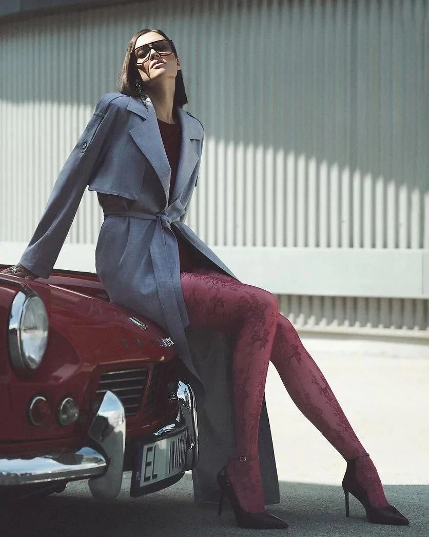 Dámské punčocháče s květinovým vzorem inspirovaným krajkou