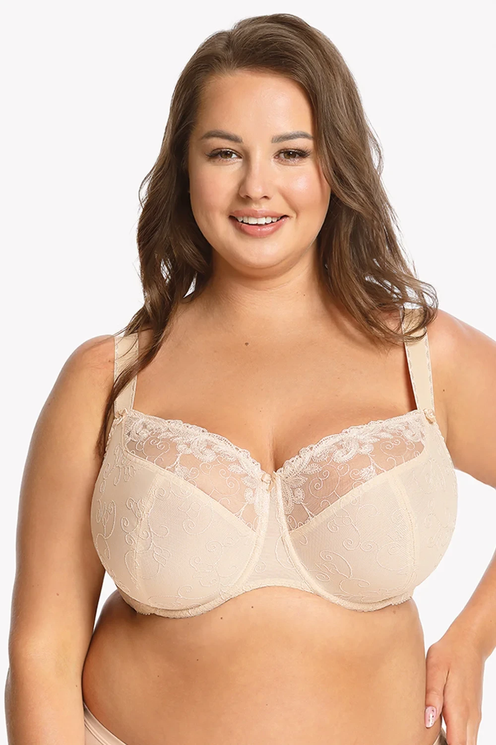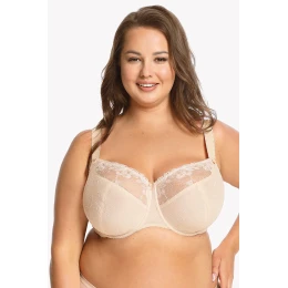 Podprsenka Gaia. Model 1027M Eve Maxi. Má dráty, které prsa vhodně tvarují. Svislé velrybí kosti zasazené po stranách. Výrobek má nastavitelné popruhy bez možnosti odepnutí. Kovové háčky na popruh. Podprsenka se zapínáním na háčky a oči. Upevňovací bod: vzadu. Výrobek je vyroben z 56 % z polyamidu, 30 % z polyesteru a 14 % z elastanu. Výrobek pro ženy.