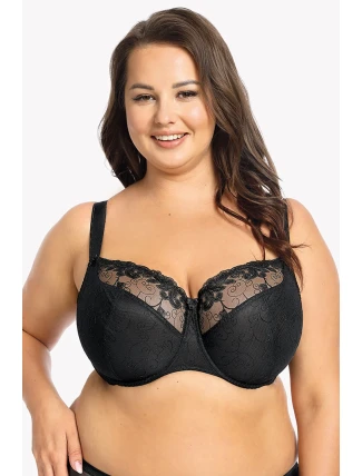 Podprsenka Gaia. Model 1027M Eve Maxi. Má dráty, které prsa vhodně tvarují. Svislé velrybí kosti zasazené po stranách. Výrobek má nastavitelné popruhy bez možnosti odepnutí. Kovové háčky na popruh. Podprsenka se zapínáním na háčky a oči. Upevňovací bod: vzadu. Výrobek je vyroben z 56 % z polyamidu, 30 % z polyesteru a 14 % z elastanu. Výrobek pro ženy.