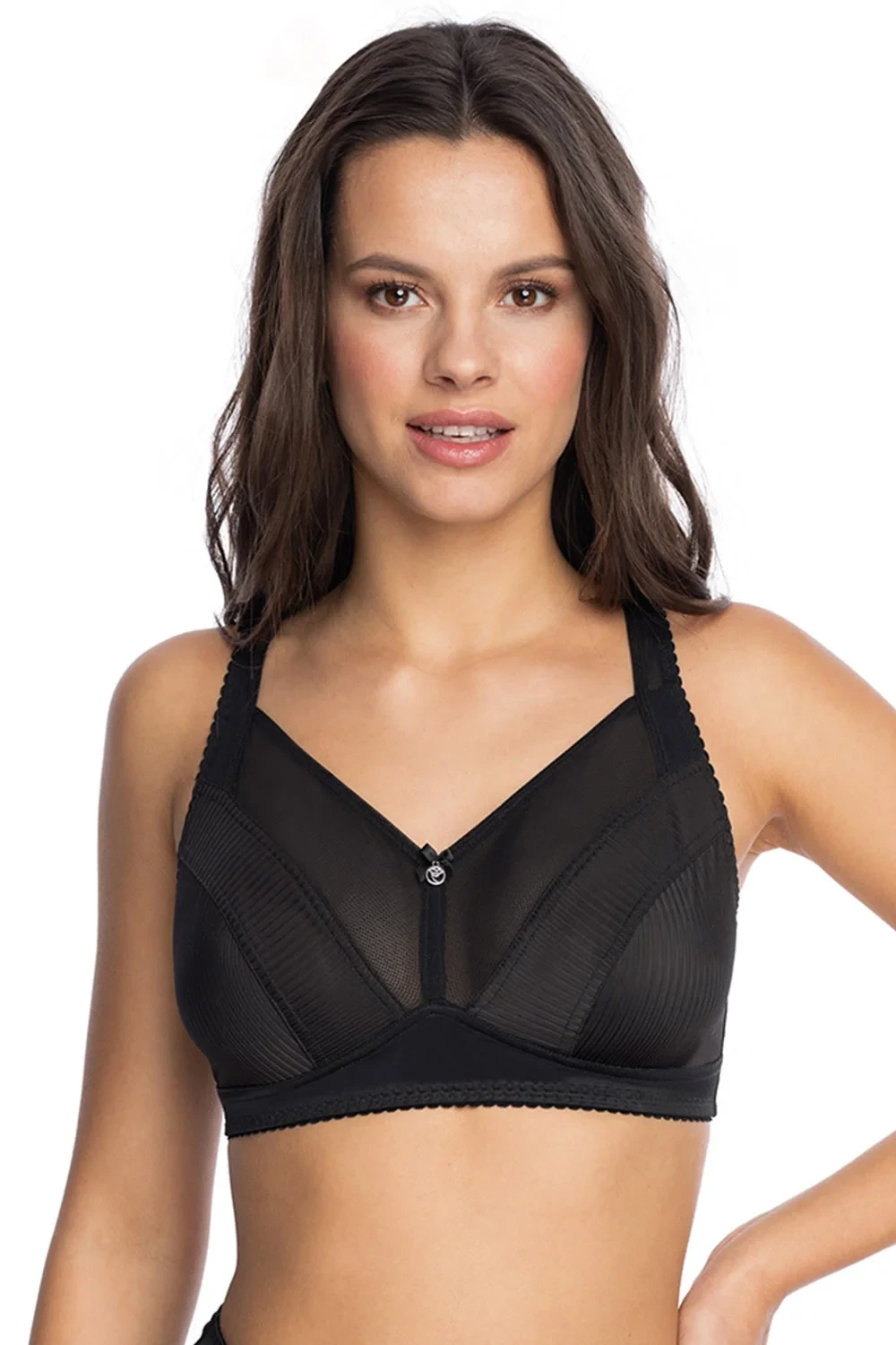 Podprsenka Gaia. Model 1125 Kalliste. Svislé velrybí kosti zasazené po stranách. Výrobek má nastavitelné popruhy bez možnosti odepnutí. Kovové háčky na popruh. Podprsenka se zapínáním na háčky a oči. Upevňovací bod: vzadu. Výrobek je vyroben z 90 % z polyamidu a 10 % z elastanu. Výrobek pro ženy.