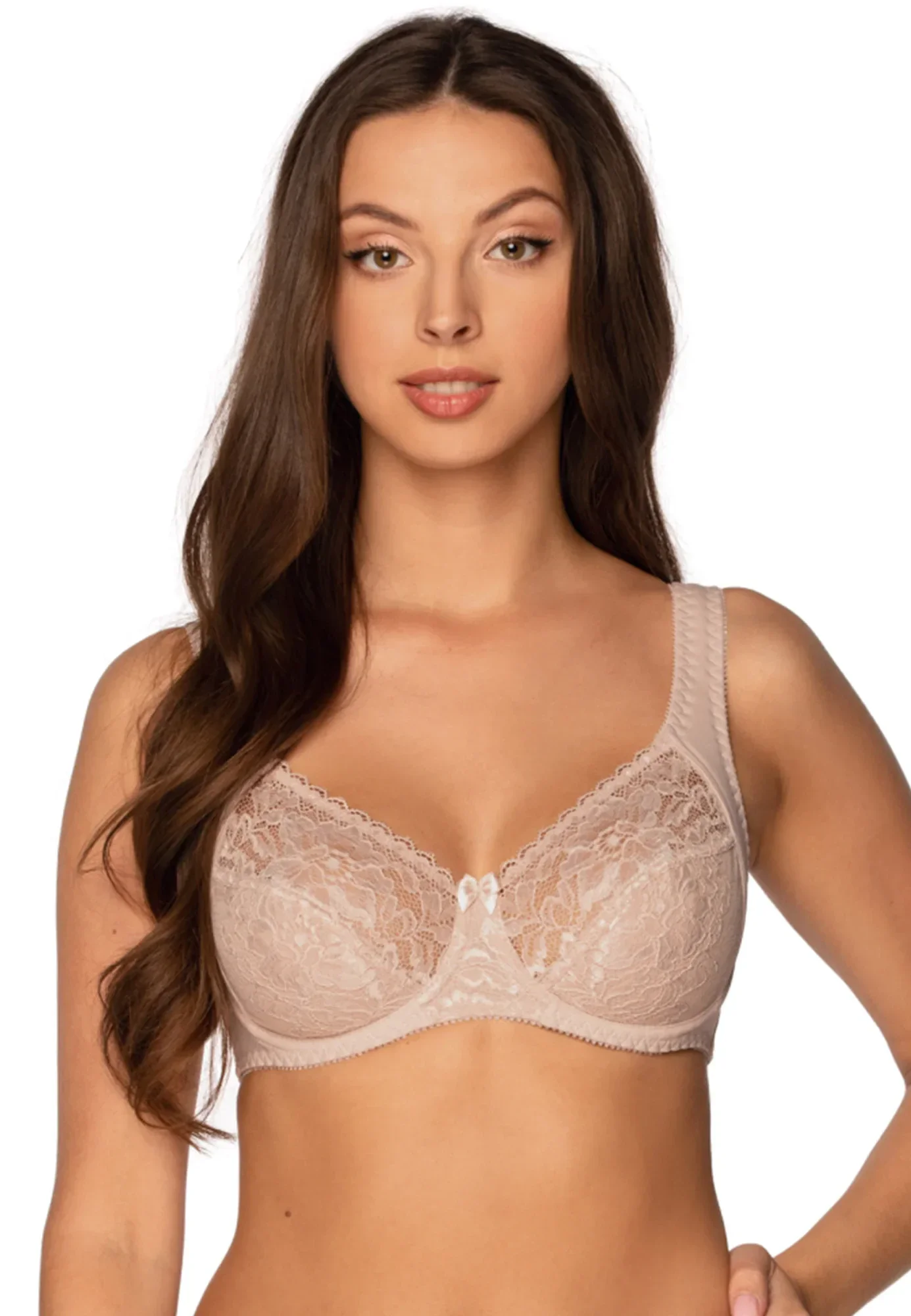 Podprsenka Gaia. Model 1160 Arabela. Výrobek má nastavitelné popruhy bez možnosti odepnutí. Kovové háčky na popruh. Podprsenka se zapínáním na háčky a oči. Upevňovací bod: vzadu. Výrobek je vyroben ze 75 % z polyamidu, 15 % z bavlny a 10 % z elastanu. Výrobek pro ženy.