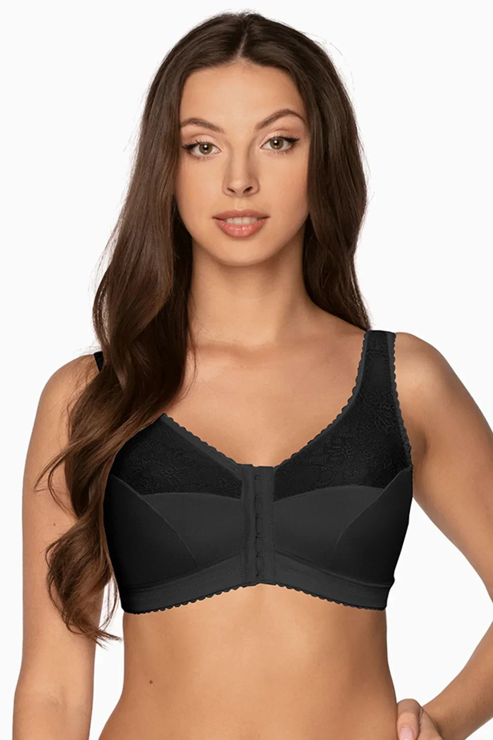 Podprsenka Gaia. Model 1163 Rachela. Výrobek má nastavitelné popruhy bez možnosti odepnutí. Kovové háčky na popruh. Podprsenka se zapínáním na háčky a oči. Zapínání: vpředu. Výrobek je vyroben z 85 % z polyamidu a 15 % z elastanu. Výrobek pro ženy.