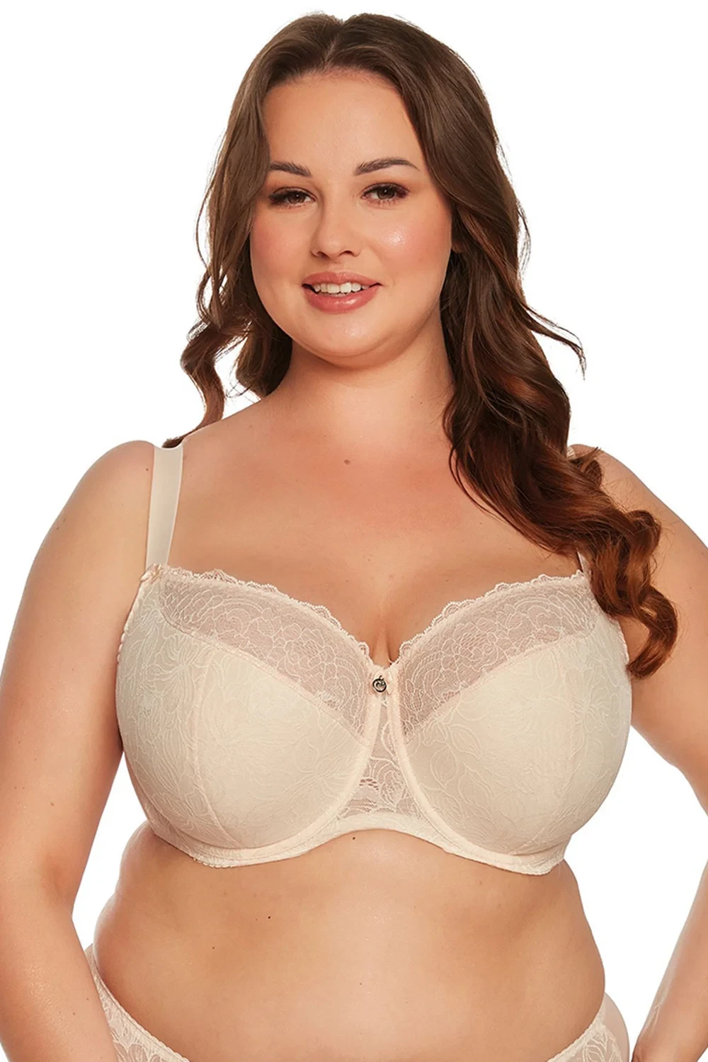 Podprsenka Gaia, model 1207M Hannah Maxi, s drátky, které podporují a tvarují prsa. Svislé kostice na bocích. Nastavitelná ramínka, neodnímatelná. Zapínání na háčky. 3 řady svislých háčků. 3 úrovně vodorovných háčků. Vyrobeno z 61% polyamidu, 14% bavlny, 12% elastanu, 10% polyesteru, 3% polyuretanu. Dámské oblečení.