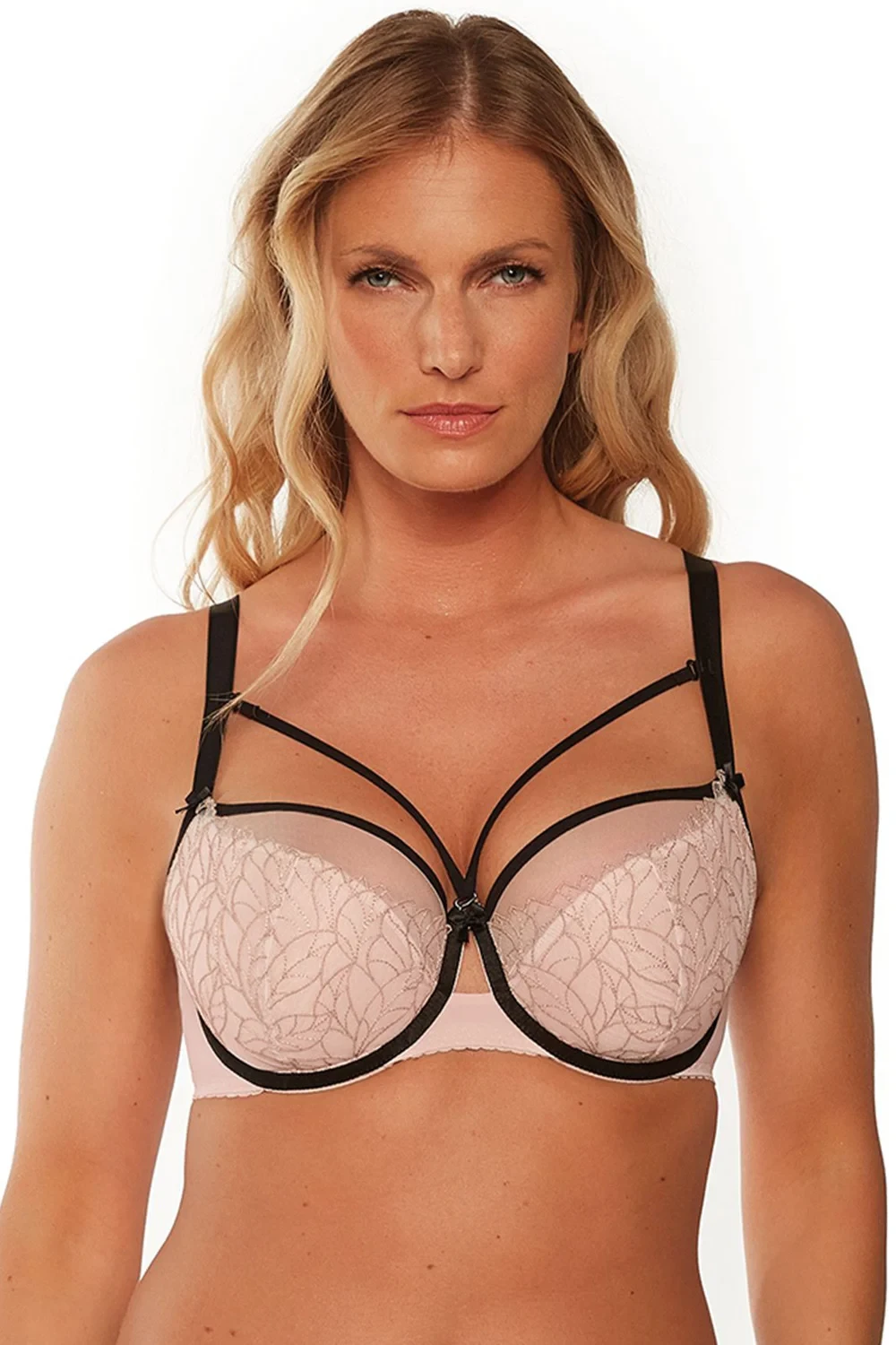 Podprsenka značky Gaia, model 1240 Leonia, s drátky, které podporují a tvarují prsa. Výrobek má nastavitelná ramínka bez možnosti odepnutí. Podprsenka má zapínání na háčky. Místo zapínání: na zádech. 2 řady svislých háčků. 3 úrovně vodorovných háčků. Výrobek je vyroben z 41 % polyamidu, 30 % polyesteru, 18 % bavlny, 6 % elastanu, 5 % polyuretanu. Dámský výrobek.