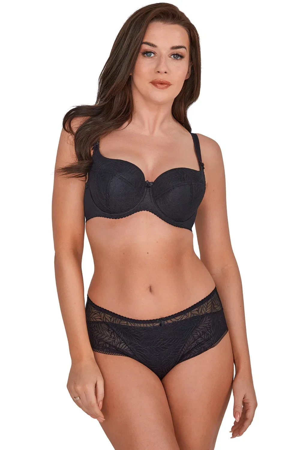 Podprsenka značky Gaia, model 758 Micaela, s drátky, které podporují a tvarují prsa. Výrobek má nastavitelná ramínka bez možnosti odepnutí. Zapínání na háčky. Místo zapínání: na zádech. 2 řady svislých háčků. 3 úrovně vodorovných háčků. Výrobek je vyroben z 39 % polyamidu, 33 % polyesteru, 13 % elastanu, 12 % bavlny, 3 % polyuretanu. Vlastnosti výrobku: maxi velikost s krajkovými plnými košíčky. Dámský výrobek.
