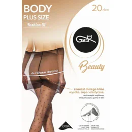 Punčochové zboží značky Gatta, model Body Plus Size 01, vyrobené z 83% polyamidu, 17% elastanu, označené kalhotky, 20 DEN, dámský výrobek, bez označených špiček.