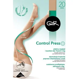 Punčochové kalhoty Gatta, model Control Press, ze 76 % polyamidu, 24 % elastanu, s vyznačenými špičkami, silikonová páska pro podporu, tloušťka 20 DEN, pro ženy.