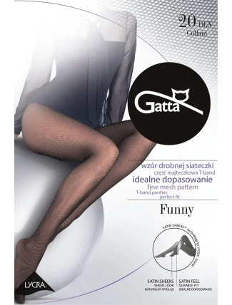 Punčochové zboží značky Gatta, model Funny 20, vyrobeno z 84 % polyamidu a 16 % elastanu. Vlastnosti produktu: módní kabaretní punčochové kalhoty 20den, bez vyznačených špiček, tloušťka 20 DEN, dámský výrobek, bez vyznačených nohaviček.