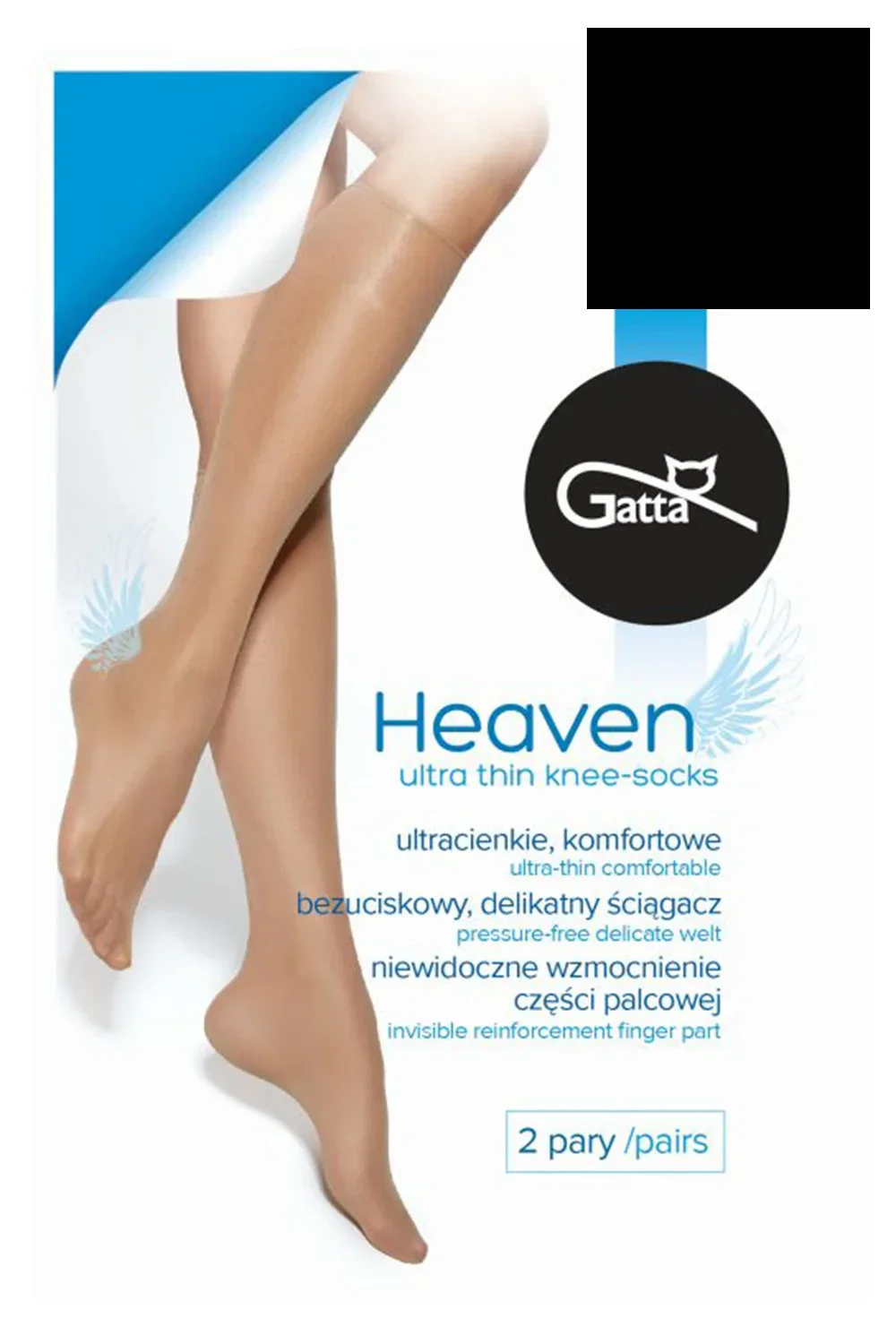 Punčochové zboží značky Gatta, model Heaven, vyrobeno ze 78 % polyamidu, 22 % elastanu. Vlastnosti výrobku: tenké, netlačené, bez vyznačených špiček, tloušťka 8 DEN, dámský výrobek.