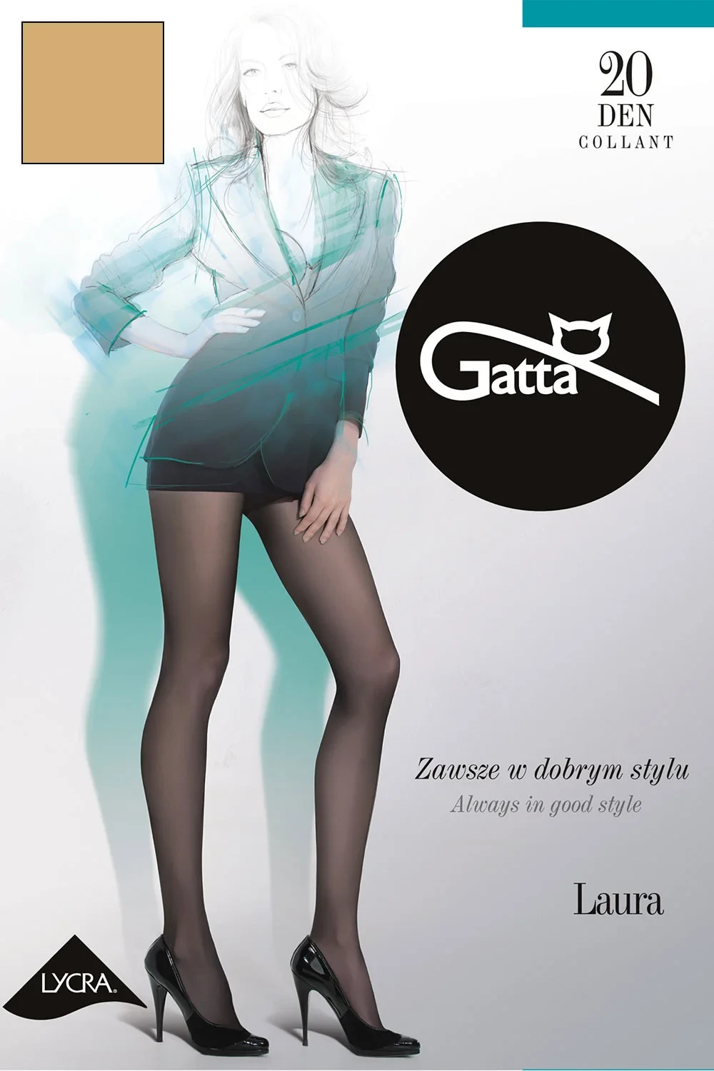 Punčochové zboží značky Gatta. Model Laura 20. Výrobek je vyroben z 90% polyamidu, 10% elastanu. Tloušťka: 20 DEN. Dámský výrobek.