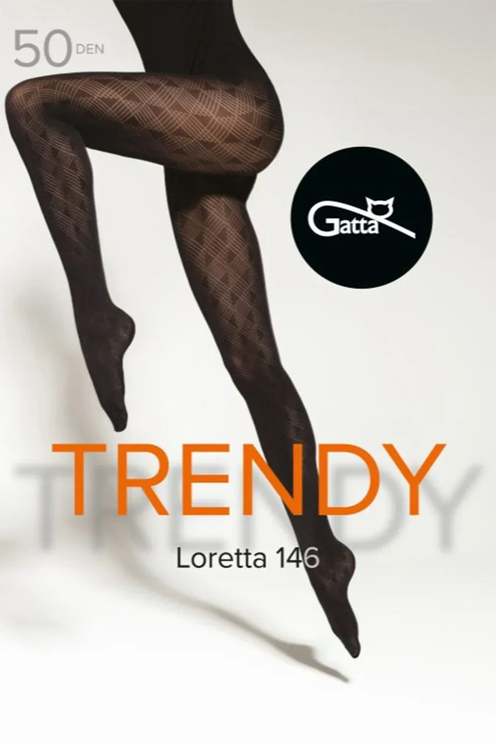 Punčochové zboží značky Gatta, model Loretta 146 50 DEN, vyrobeno z 90% polyamidu, 10% elastanu, bez vyznačených špiček, 40 DEN, dámské, vyznačené kalhotky.