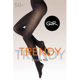Punčochové zboží značky Gatta, model Loretta 150 50 DEN, vyrobeno z 93% polyamidu, 7% elastanu, bez vyznačených špiček, tloušťka 50 DEN, dámský výrobek, bez vyznačených kalhotek.