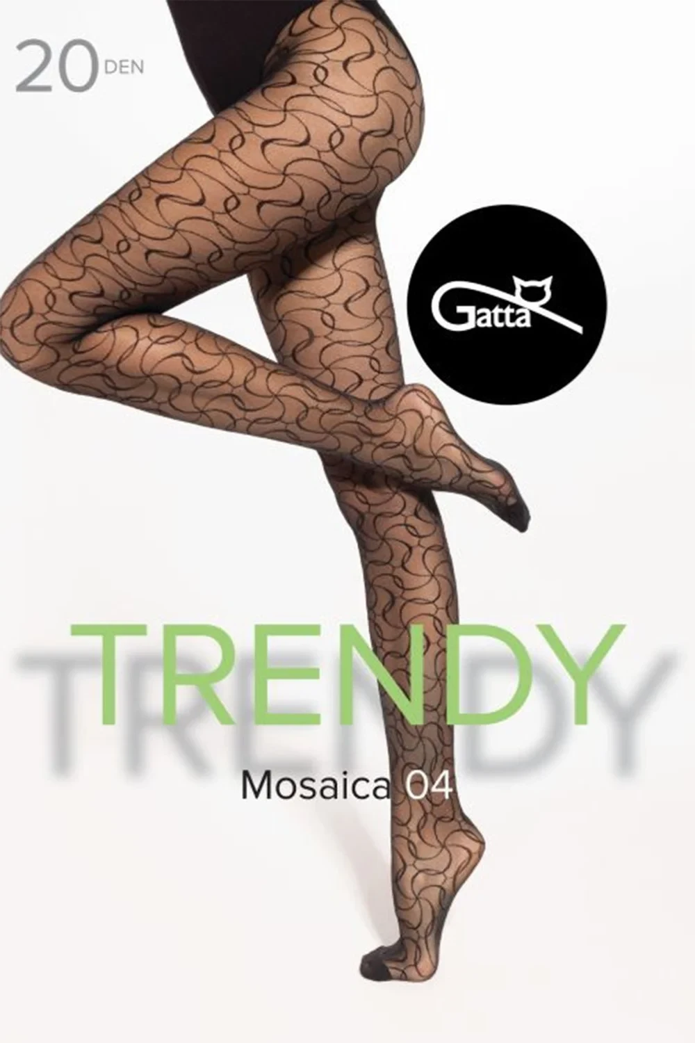 Punčochové kalhoty značky Gatta, model Mosaica 04 20 DEN, vyrobené z 87 % polyamidu a 13 % elastanu, s vyznačenými špičkami, tloušťka 20 DEN, bez vyznačených nohaviček.