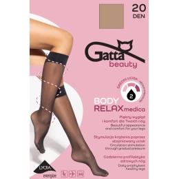 Punčochové zboží značky Gatta, Relaxmedica 20 DEN, vyrobené z 87 % polyamidu a 13 % elastanu, 20 DEN, dámské. Bez vyznačených špiček.