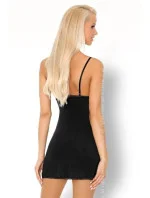 Přiléhavá noční košile z elastické tkaniny. Černé, s krásně zdobeným výstřihem - na jeho pozadí jsou světlé květinové vzory. Prošívání pod poprsím zvýrazněné saténovou mašlí. Tanga jsou součástí balení. Složení: 90 % polyamid, 10 % elastan.