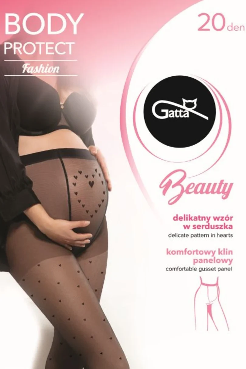 Těhotenské punčochové kalhoty Gatta Body Protect Beauty 20 den jsou kombinací pohodlí a jemné ženskosti. Byly navrženy s ohledem na budoucí maminky, dokonale se přizpůsobí měnící se siluetě a poskytují oporu a pohodlí v oblasti břicha. Jemný vzor srdíček dodává šarm a činí každodenní styling jedinečným. 20denní elastická příze a panelový klín zaručují dokonalé přizpůsobení a pohodlí při nošení po celý den. Jsou ideální volbou pro těhotné ženy, které se chtějí cítit krásně a pohodlně.