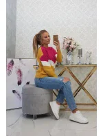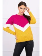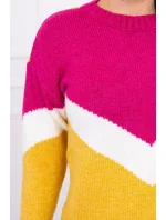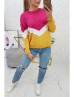 Geometrický vzorovaný svetr fuchsiová+hořčicová