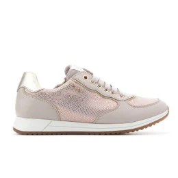 Dívčí obuv z lesklé kůže a syntetického materiálu. Atraktivní béžová barva se zlatým leskem. Antibakteriální a protišoková kožená stélka. Svršek má kromě šněrování také zip a malé zapínání na suchý zip na vnitřní straně. Pečlivá povrchová úprava. Technologie Geox Respira - patentovaná perforovaná podrážka obuvi postavená na mikroporézní membráně, která absorbuje a odvádí pot, aniž by do boty pronikala voda.