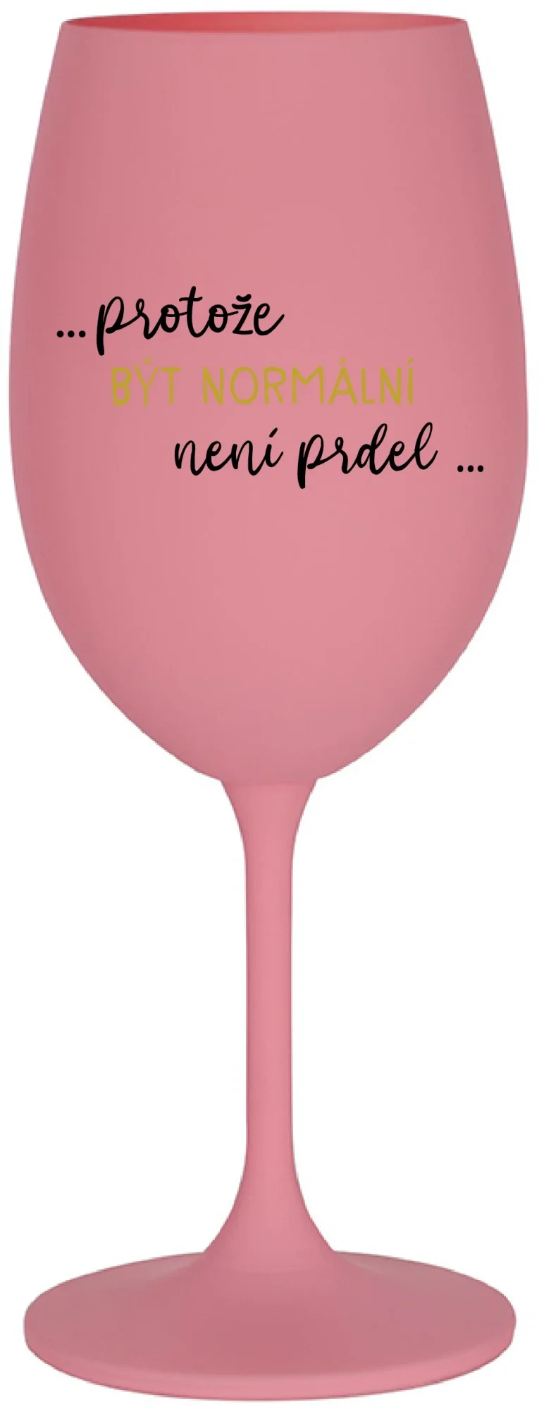 ...PROTOŽE BÝT NORMÁLNÍ NENÍ PRDEL... - růžová sklenice na víno 350 ml