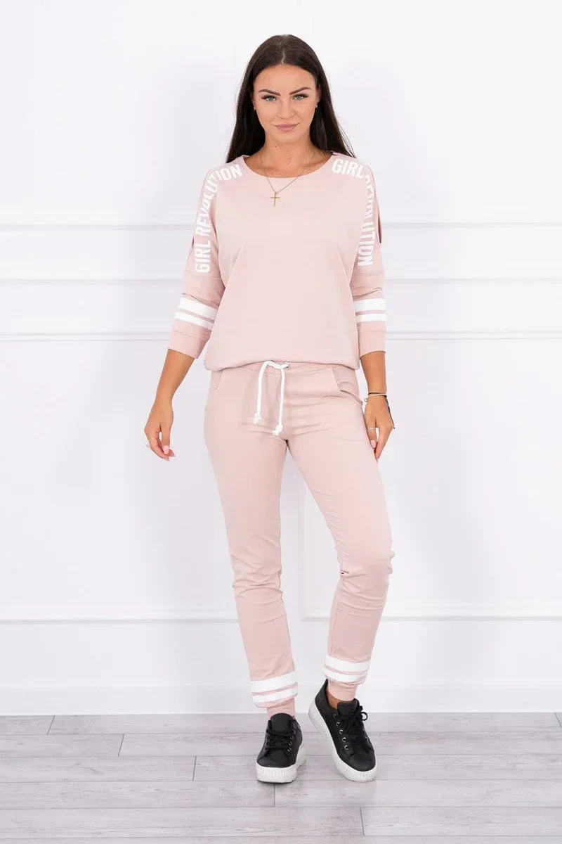 Představujeme vám sadu mikiny a kalhot s nápisem Girl Revolution. Sada je vyrobena z vysoce kvalitního materiálu. Velikost je univerzální a vyhovuje dámám velikosti S, M nebo L.