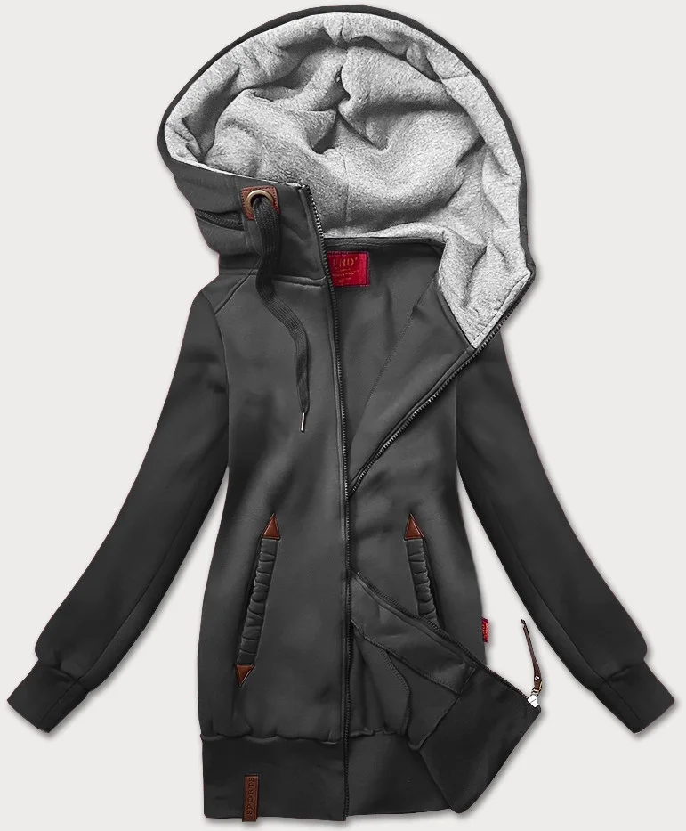 Hladká dámská mikina v grafitové barvě s kapucí LHD (AMG169)