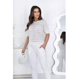 Tento stylový prolamovaný svetr s krátkým rukávem je jedinečným kouskem oblečení, který kombinuje eleganci s lehkostí. Je vyroben ze směsi vysoce kvalitních přízí - 65 % akrylu, 28 % polyesteru a 7 % polyamidu - a poskytuje pohodlí a odolnost. Prolamovaný vzor mu dodává jemný vzhled a díky krátkým rukávům je ideální pro přechodné období. Skvěle se kombinuje s džínami i sukněmi a vytváří stylový a ženský vzhled.