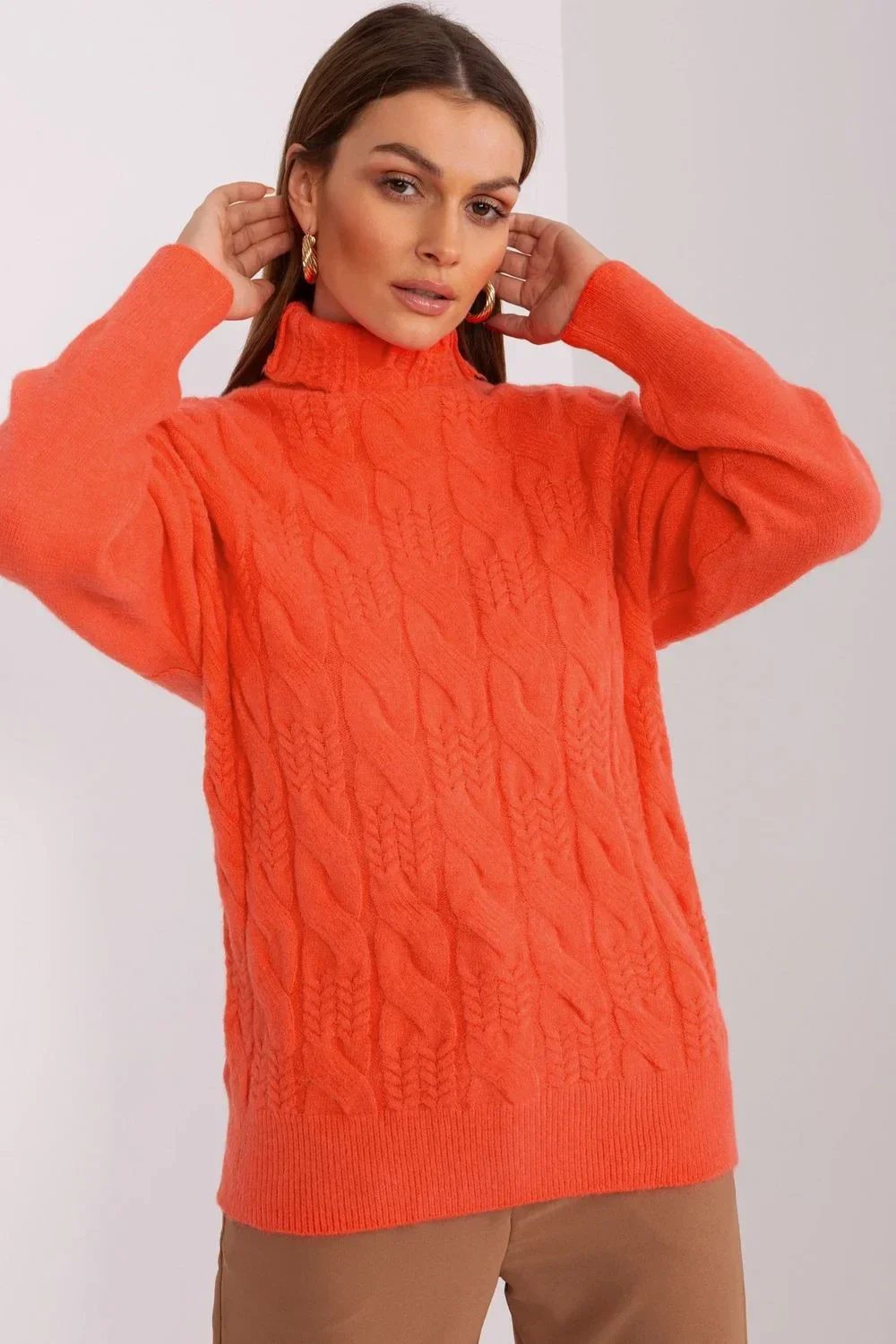 Tento svetr s rolákem je ideální volbou pro každodenní nošení, do práce nebo na setkání s přáteli. Pestrá struktura vazby na přední straně mu dodává jedinečný charakter a odlišuje ho od ostatního běžného oblečení. Tento svetr je vyroben z vysoce kvalitního akrylu, takže nejen skvěle vypadá na těle, ale také nabízí pohodlí. Díky dlouhému rukávu a roláku je ideální pro chladnější dny a zároveň mu dodává eleganci a styl. Standardní délka umožňuje jakoukoli kombinaci, ať už s džínami nebo sukní. Je spolehlivou volbou pro ty, kteří ocení pohodlí a módní ležérní vzhled.